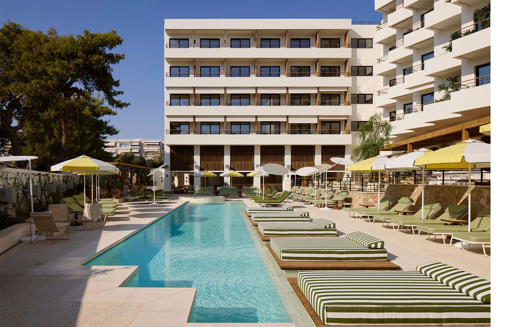 L’Ace Athens Swim Club s’est offert à nous comme une toile blanche, propice à exprimer notre amour du sur-mesure, en tissant des atmosphères uniques, des matières sensuelles et des objets inspirants. Chaque espace a été pensé comme une scène, minutieusement orchestrée pour magnifier chaque usage et chaque instant, dans un élan visant à redonner à l’hôtel son éclat d’antan. Nous avons recherché la pureté et la clarté des lignes dans sa façade singulière, afin de l’ériger en véritable repère urbain. Ce projet se veut un hommage à l’énergie vibrante et à l’éclectisme joyeux d’Athènes, ainsi qu’à sa scène artistique foisonnante, qui n’ont cessé de nourrir notre inspiration tout au long de ce voyage. Il incarne la passion qui nous anime au quotidien en tant qu’architectes, dédiés à la création d’espaces qui résonnent, de l’aménagement paysager au mobilier sur mesure. Il représente l’aboutissement d’une collaboration enrichissante avec Atelier Ace, Matthieu Prat, Back to the Future, Georges Batzios Architects, des artistes et toute l’équipe locale.